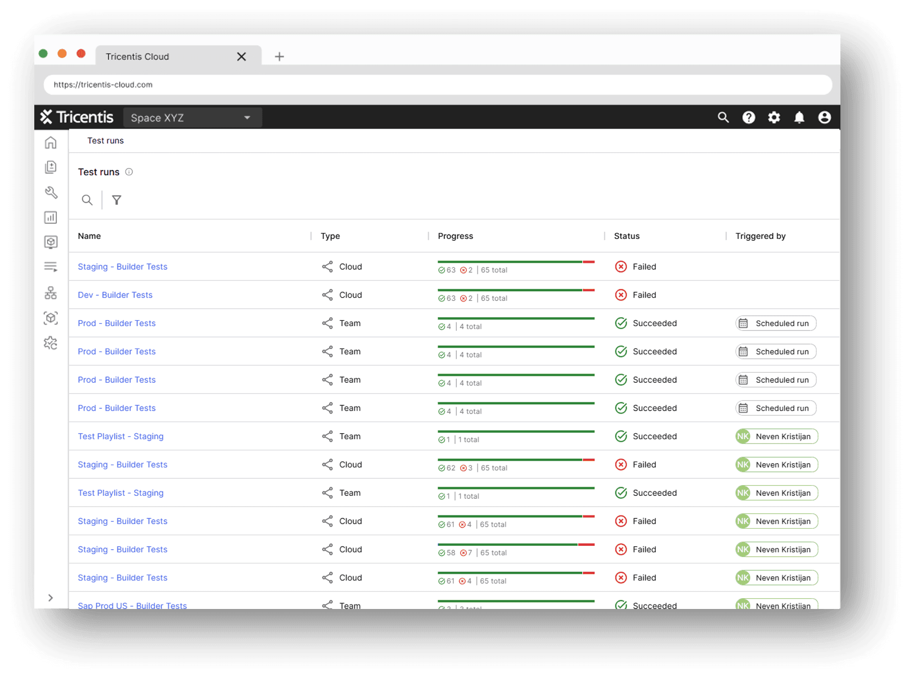 Das Tricentis Elastic Execution Grid sorgt mit moderner Cloud-Technologie für eine hochskalierbare, parallele Testausführung bei maximaler Geschwindigkeit, Flexibilität und Kosteneffizienz. Anwender können mühelos und auf Testfallebene persönliche, Team- und Cloud-Agenten konfigurieren und – ohne lokale Installation – Tests vollständig auf von Tricentis gehosteten Ressourcen ausführen.