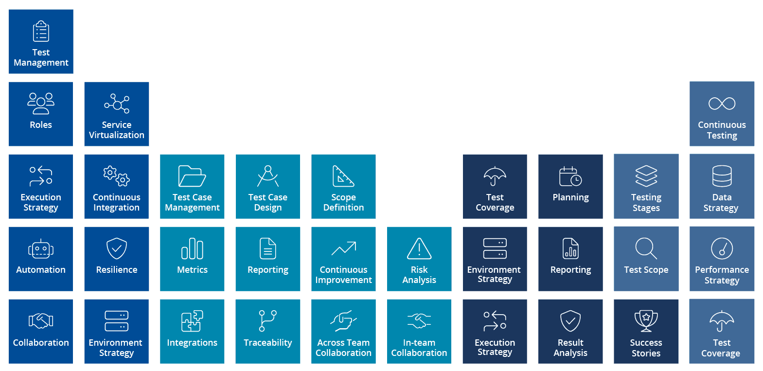 Tu viaje de ingeniería de calidad comienza aquí. Ahora es el momento de evaluar tu madurez de calidad e identificar cualquier brecha que pueda retrasar tus proyectos actuales o futuros. Al diseñar la arquitectura de pruebas de alto nivel y tu estrategia general de pruebas, crearás directrices que mantendrán tu proyecto en el camino correcto.