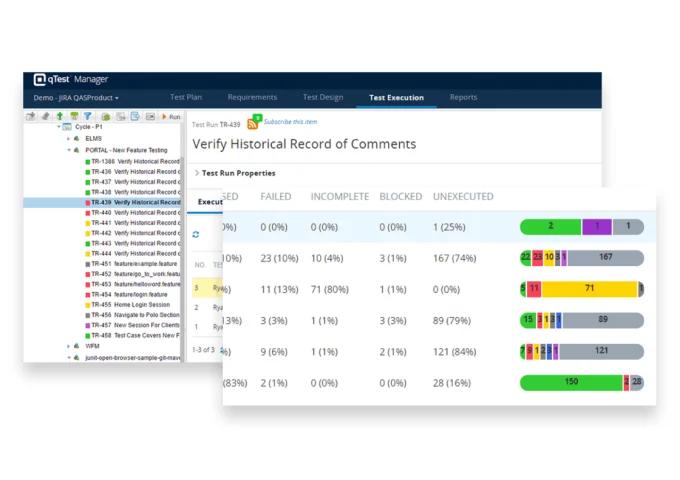 Avec qTest Manager, l’exécution des tests est intuitive. Vous pouvez planifier, attribuer et exécuter vos tests en toute confiance. Vous disposez d’une visibilité sur l’ensemble du cycle de vie des projets, builds, cycles, suites, etc.