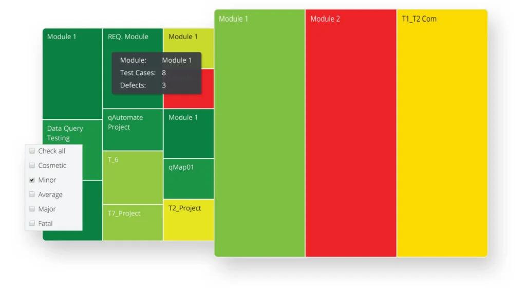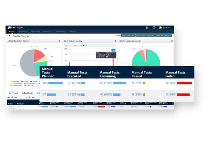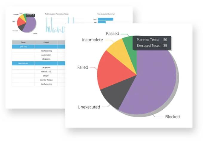 Utilisez les modèles de rapports prêts à l’emploi pour analyser la qualité, la couverture et la vitesse, ou créez des rapports et des tableaux de bord personnalisés pour rendre compte des indicateurs les plus importants pour votre entreprise. Créez des camemberts, des graphiques à barres, des diagrammes de dispersion, et bien plus encore.