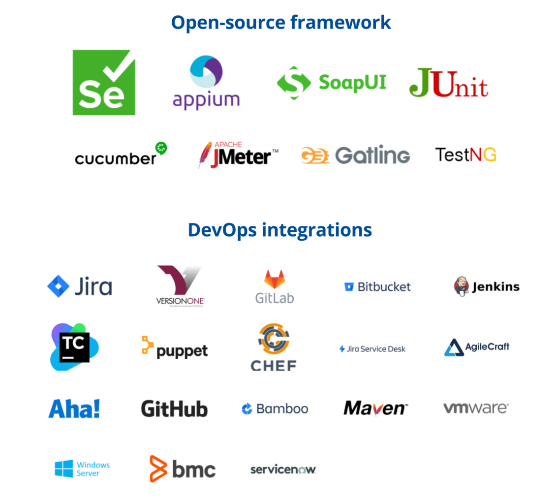 The Tricentis continuous testing platform includes everything you need to support the full testing lifecycle across your enterprise application landscape. It covers everything from packaged applications like SAP and Salesforce to custom and cloud-native applications. It even integrates with open-source and DevOps tools so you can centrally manage testing activities and connect continuous test automation into your delivery pipelines.