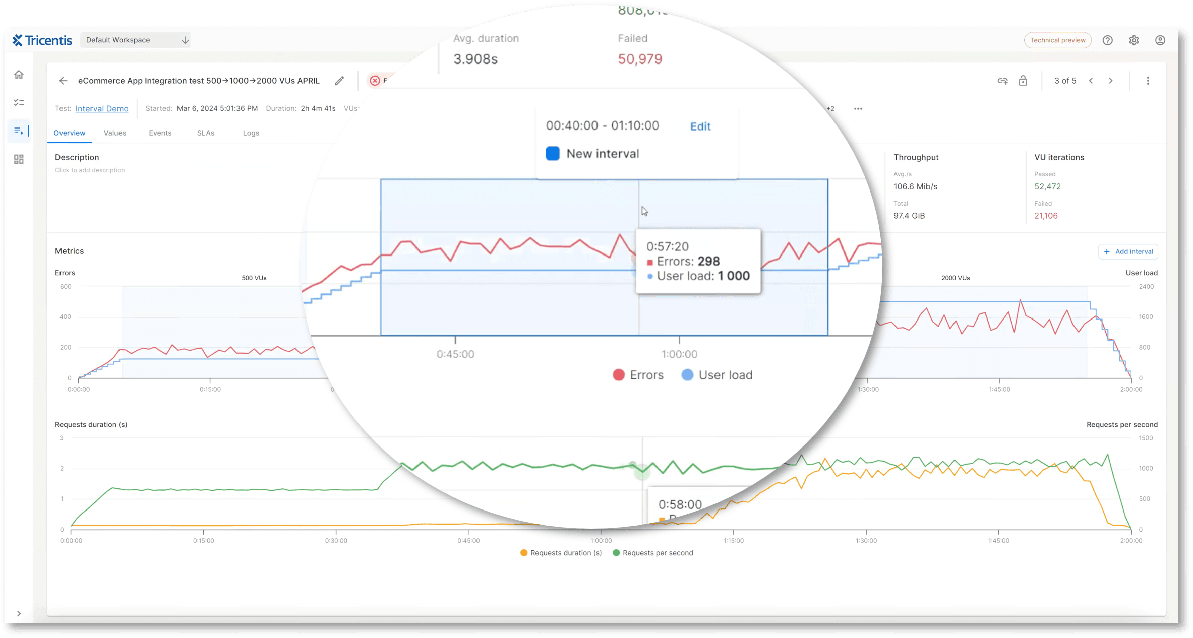Analyze your test results live so you can react rapidly to an anomaly before the test is over. And leverage in-depth test reporting when the test is completed.