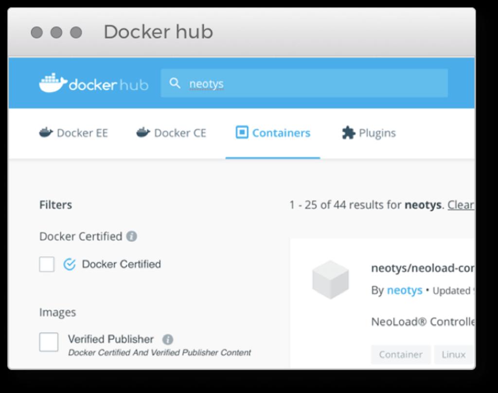 Controller and LoadGenerator Docker images are provided on DockerHub to ease the deployment of NeoLoad in a Docker-based environment.