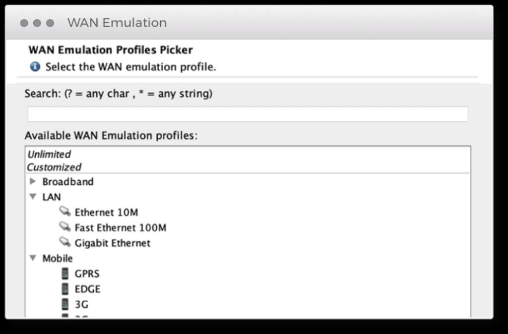 For the most real-world simulated mobile and web applications tests, NeoLoad emulates users accessing the server with varying bandwidths, latency, and packet loss with preconfigured values for varying signal strengths of 3G, 4G, WiFi, and more.