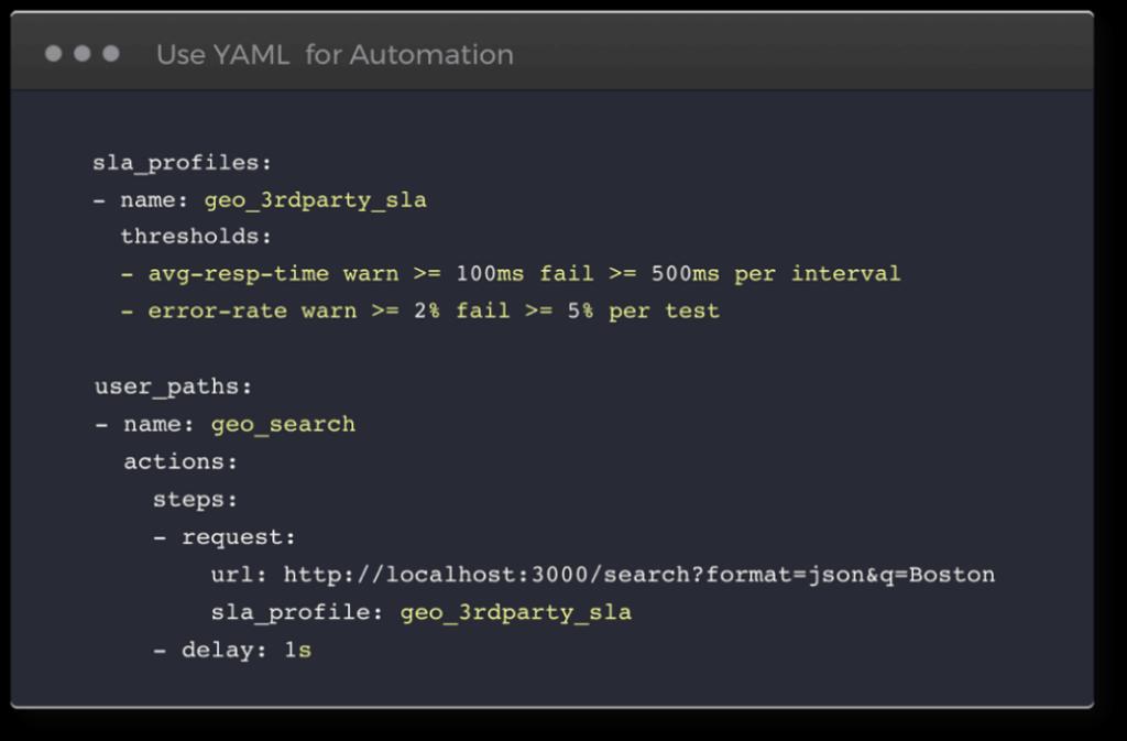 Overriding a NeoLoad Project: NeoLoad provides the unique capability to override a GUI-based Project with a YAML text file so that it’s easy to set any environment contextual settings in an automated process.