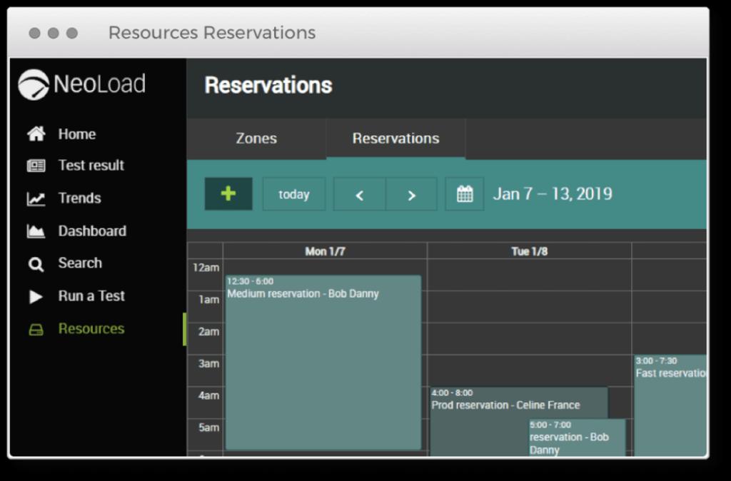 Reserve load testing infrastructure (i.e., controllers and load generators) and virtual users by date and duration to guarantee resources are dedicated for application performance testing for a specific team or team member and avoid testing schedule conflicts among the teams.