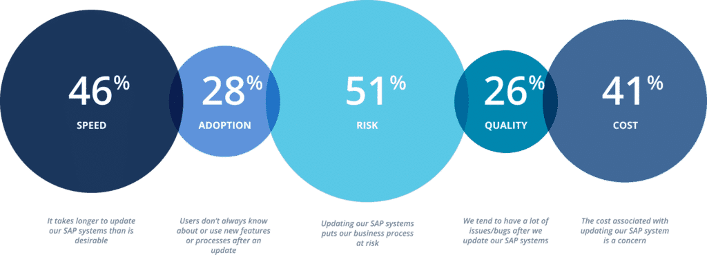 Respondents from APAC note the high frequency of SAP changes as their top testing challenge, while respondents in Europe are more likely to struggle with availability of test data and environments. In the Americas, respondents were most likely to report a lack of dedicated testing resources as their top challenge.